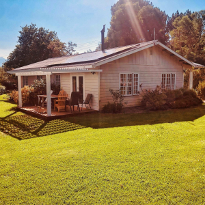 It is a cozy, charming wooden cottage with 3 bedrooms and 2 bathrooms (one en-suite) and a beautiful entertainment lounge/tv room, a big kitchen, perfect for a family or a group of gathering friends.